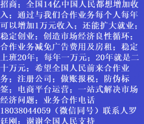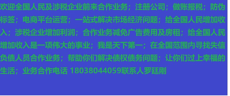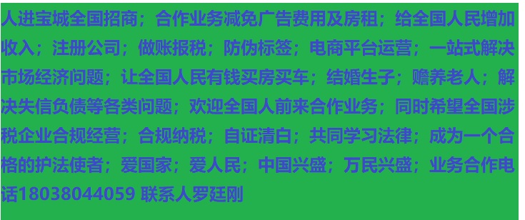 人進寶城全國招商;合作業(yè)務減免廣告費用;歡迎全國涉稅企業(yè)前來合作;業(yè)務合作電話 18038044059 聯系人羅廷剛